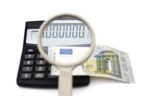 concept of accounting fraud with money,calculator,magnifier